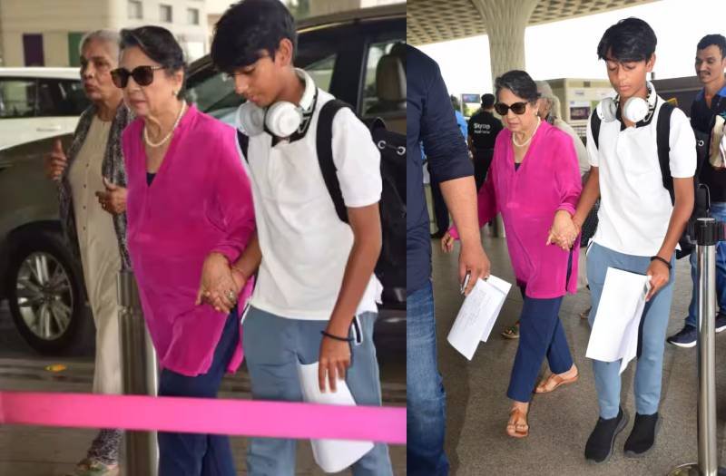 अभी हाल ही में काजल की मां तनुजा एयरपोर्ट पर स्पॉट हुई है। इस दौरान उनके साथ उनके नाती युग देवगन और बेटी काजोल भी दिखाई दी हैं। युग और तनुजा गाड़ी से उतरे तो युग में सबसे पहले अपनी नानी की तरह हाथ बढ़ाया और उनका सहारा बनकर आगे बढ़े। एयरपोर्ट के गेट पर पहुंचने तक युग ने नई यानी की तनुजा का हाथ नहीं छोड़ा। इस दौरान युग देवगन बहुत ही अलग अंदाज में दिखाई दे रहे थे।